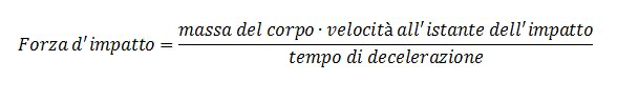 Supponiamo di voler calcolare la dinamica della forza d’impatto, definita come «l’incontro violento tra due corpi (o tra corpo e superficie)», misurando il rapporto tra massa, velocità al momento del contatto e tempo di decelerazione. Nello specifico, si tratta di stimare il periodo necessario a un oggetto per passare dalla velocità di regime allo zero: questo intervallo può variare da decimi di secondo (in caso di collisione violenta) a qualche secondo (per atterraggi più delicati). Nel primo caso, naturalmente, l’impatto sprigionerà una potenza superiore.