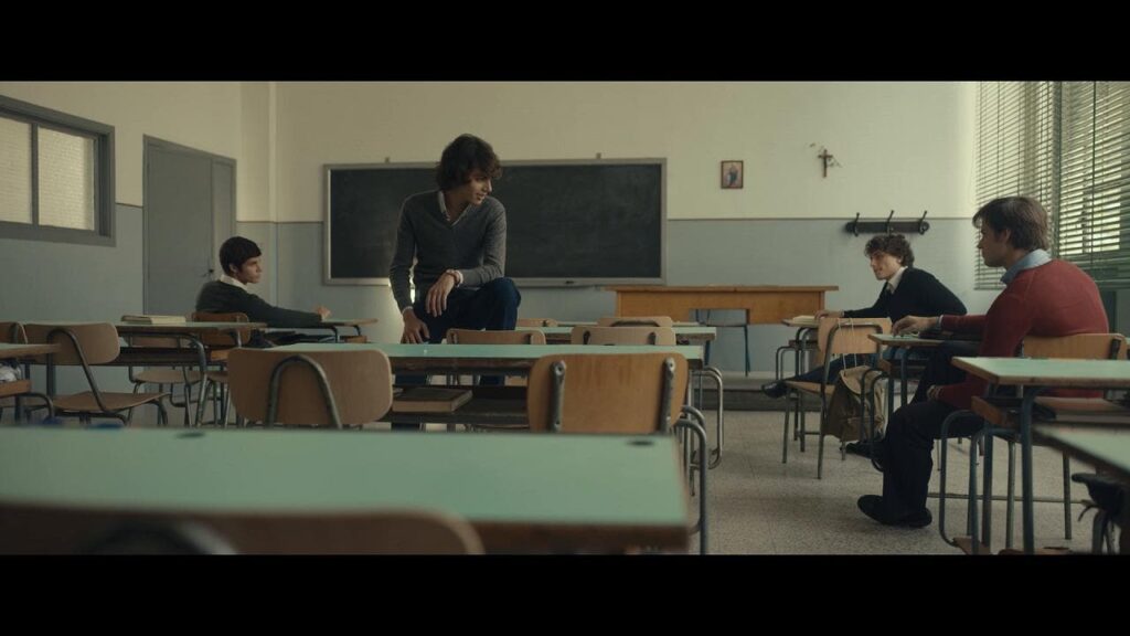 La cifra (tecnica) del film è evidente: montaggio ellittico. L’obiettivo dell’alternanza tra tempo della storia e flashback è quello di riprodurre l’Italia degli anni ’70; il regista Stefano Mordini sceglie climax ascendente e musica didascalica a ogni salto temporale, preoccupatissimo che il film annoi. E il timore diventa ossessione, il contesto è impalpabile: il voice over di Albinati-protagonista riempie i momenti morti, le traiettorie dei personaggi sono scollate da una Roma che è quasi d’intralcio. L’impressione è di restare in superficie, a favore di un’impostazione che ribalta capo e coda del romanzo: il flash inziale di Donatella (Benedetta Porcaroli) esanime che bussa dal bagaglio della 127 costruisce una narrazione sospesa; al contrario, nel libro i fatti del Circeo colgono il lettore impreparato, la scrittura deflagra dopo oltre 400 pagine, circondata da un’accuratissima somatizzazione ex ante. La battuta «come si passa da un giorno all’altro da ragazzi difficili a feroci stupratori e assassini?» rimane inascoltata; stravolgere la narrativa smisurata del libro era inevitabile (un’esigenza), ma saldare la narrazione attorno a una conclusione (già) disvelata, sembra una scelta apotropaica anti-noia, preparatoria, che inserisce il gioco chiave “commento sincronico/cognizione diacronica” del romanzo in una dimensione solo ex post.